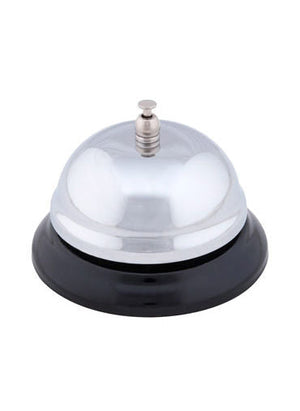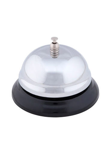This durable, nickel-plated call bell features a classic polished top with a black plastic base that makes it the perfect fit for your hotel, small convenience store, or café. It has a loud, clear ring that your staff and guests alike will hear.This call bell is perfect for both customers and employees. Your patrons can use it to alert a staff member that service is being requested, or, the baristas at your trendy cafe can use it to indicate "order up!"