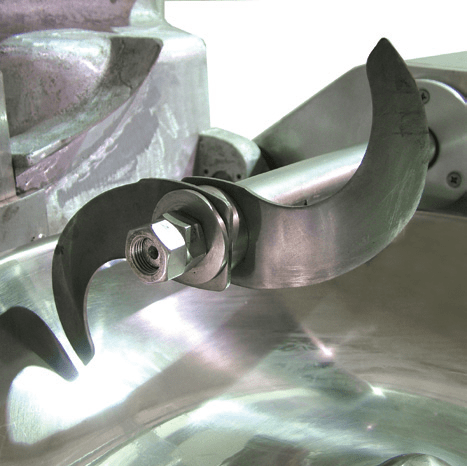 The Omcan "FP-CN-0008" bowl cutter (sometimes known as a buffalo chopper) is perfect for chopping and emulsifying large quantities of meats and vegetables. It has a powerful 1 horsepower motor, a 8.4 quart capacity, and a one speed motor of 1,400 RPM.