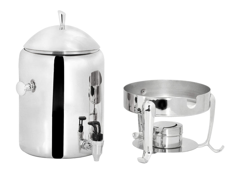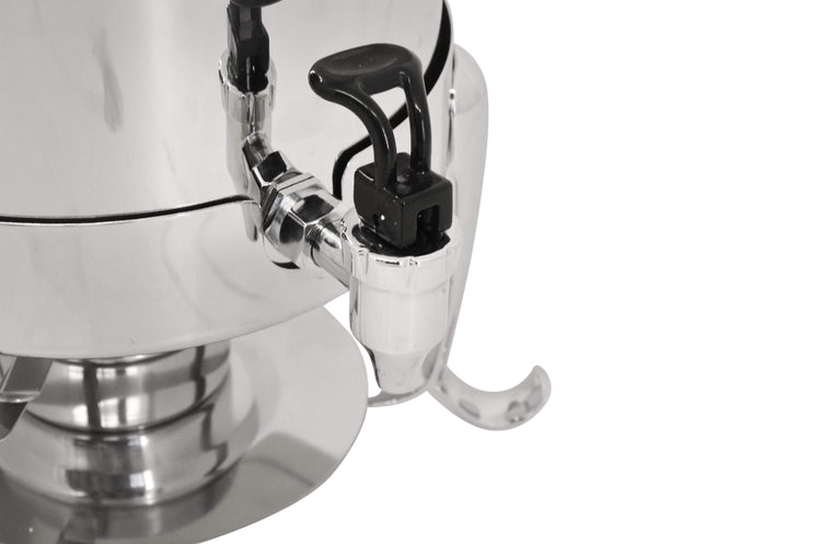 This is an Omcan commercial stainless steel coffee urn (item 80533) with an 11 litre capacity (11.6 quart). With its elegant style and simple design, it can complement any hotel beverage station, catering, or buffet operation.