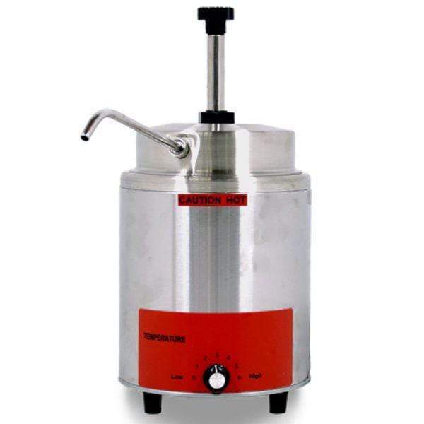 The Omcan FW-CN-0004-P is a countertop food warmer with a 3.5 quart (3.3 litre) capacity, which comes with a spout and pump, making this perfect to heat up and hold cheese, fudge, caramel, gravy and more.