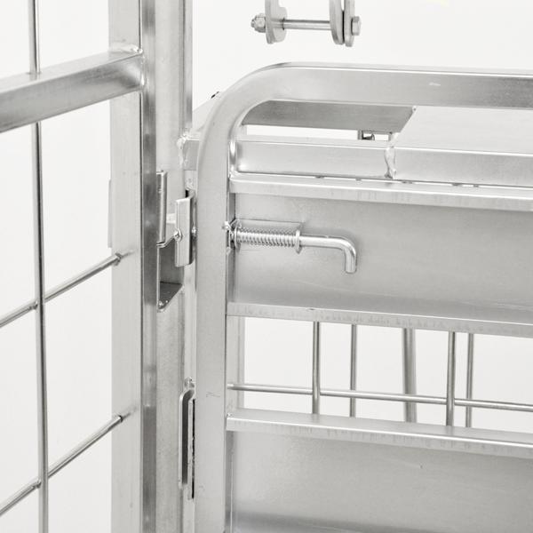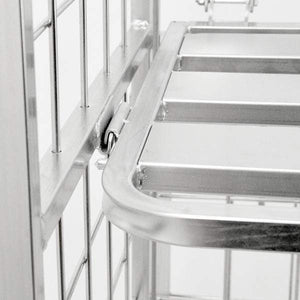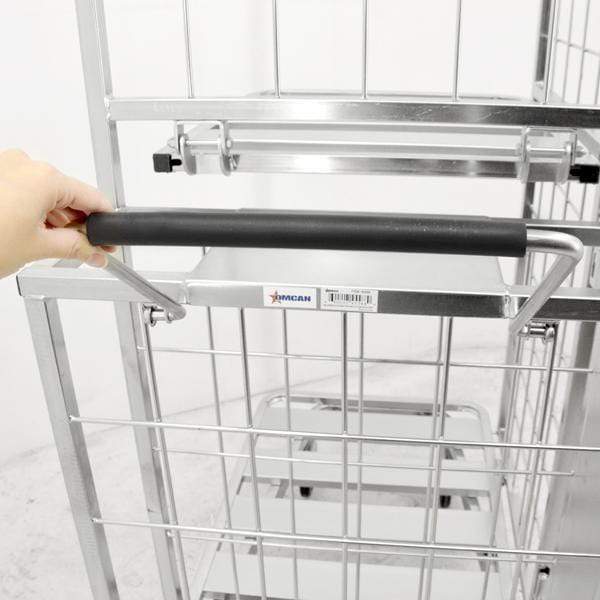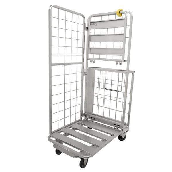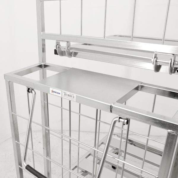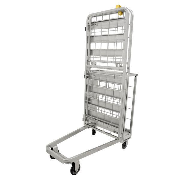 The front casters are fixed and the two rear casters can swivel, which makes for easy transportation, even with a large load. One of the best things about this stocking cart is that it can be folded up and then nested, so it is perfect for tucking away somewhere, so it won't be taking up too much space.