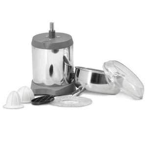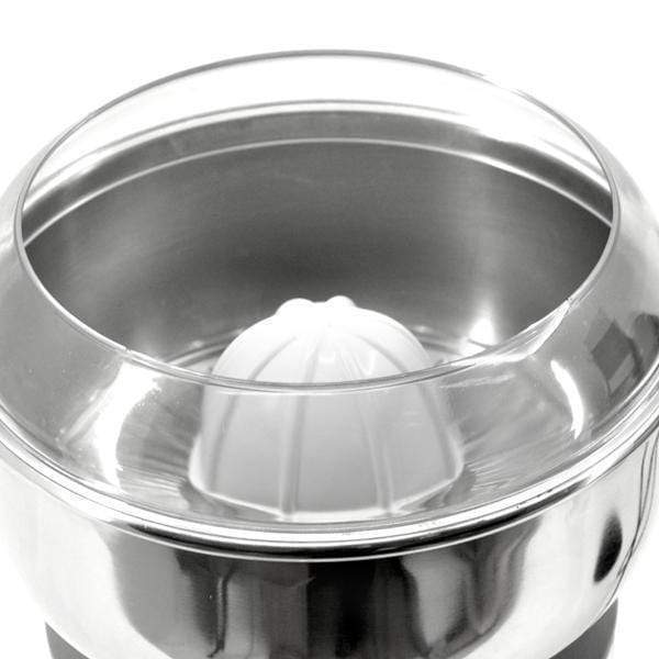 The Omcan JE-IT-0900 is made of light alloy and stainless steel. It comes with a stainless steel removable bowl and two interchangeable cones — one for large and one for small citrus fruits.