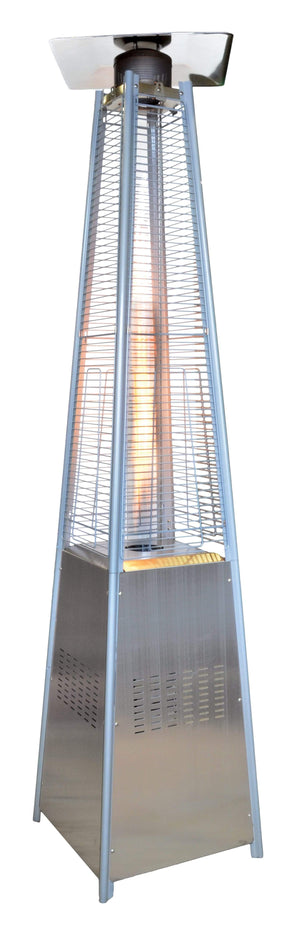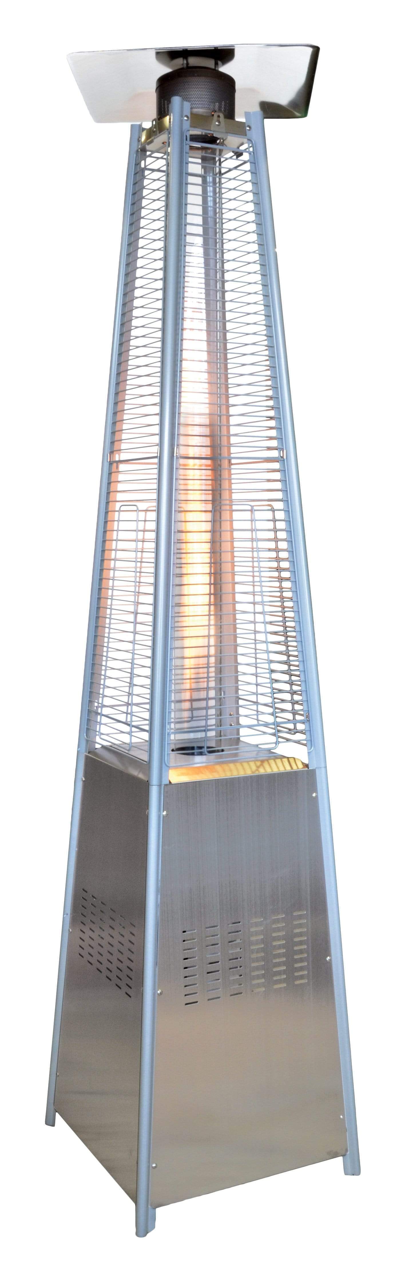 The Omcan PH-CN-0042-S is a commercial, quartz tube patio heater with an elegant pyramid-style design and a stainless steel body with an attractive flame to add to the ambiance of your restaurant's patio and to keep your guests warm.