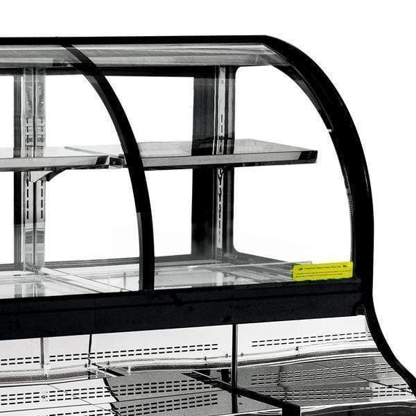 - Top shelf: Enclosed, anti-fog front curved glass with rear sliding door