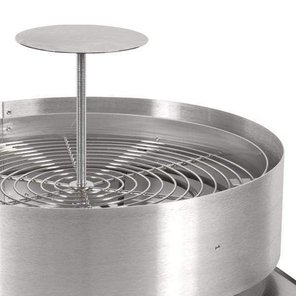 The heat is controlled via a thermostat, so you'll have precise controls over the heat, which can be intermittent or continuous. And the pedestal is adjustable so you'll be able to cap various sizes of pizzas.