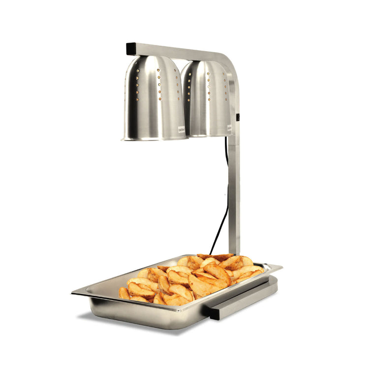 - Heat lamps warm the tray within 5 minutes of turning them on