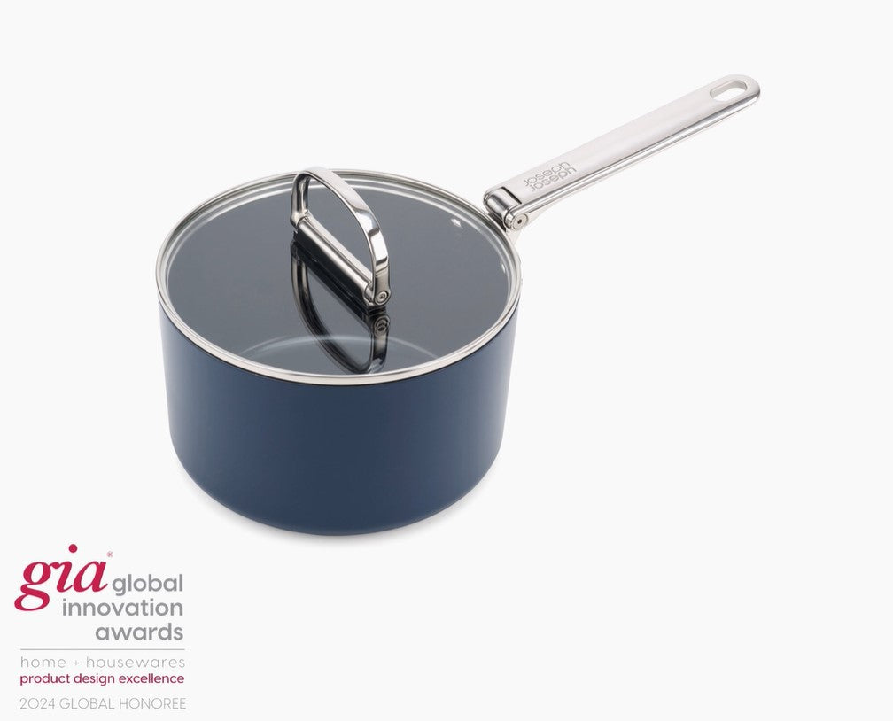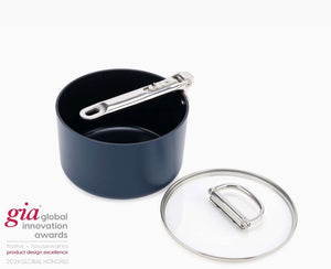 Space Folding Handle Ceramic Non-stick 2.9 Qt. Blue Saucepan & Lid