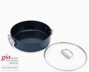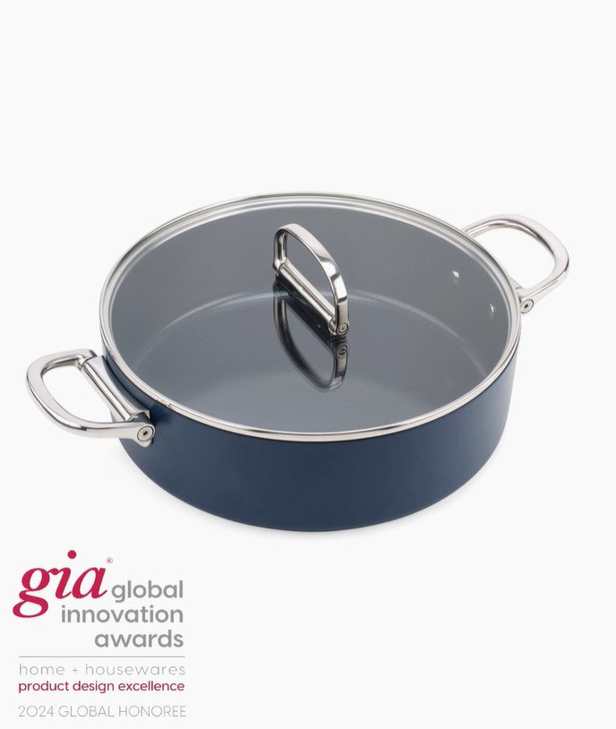 - 5 qt. shallow casserole pan ideal for one pot meals, slow cooking and braising.