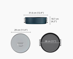 Space Folding Handle Ceramic Non-stick 5 Qt. Blue Shallow Casserole Pan & Lid