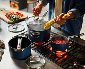 Not all pans are created equal. Introducing Space, our revolutionary range of professional quality cookware, finished in premium Midnight Blue.