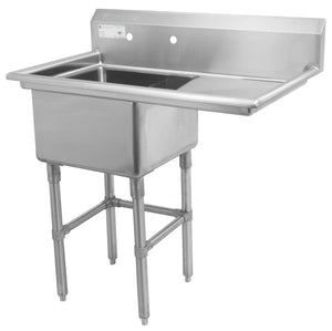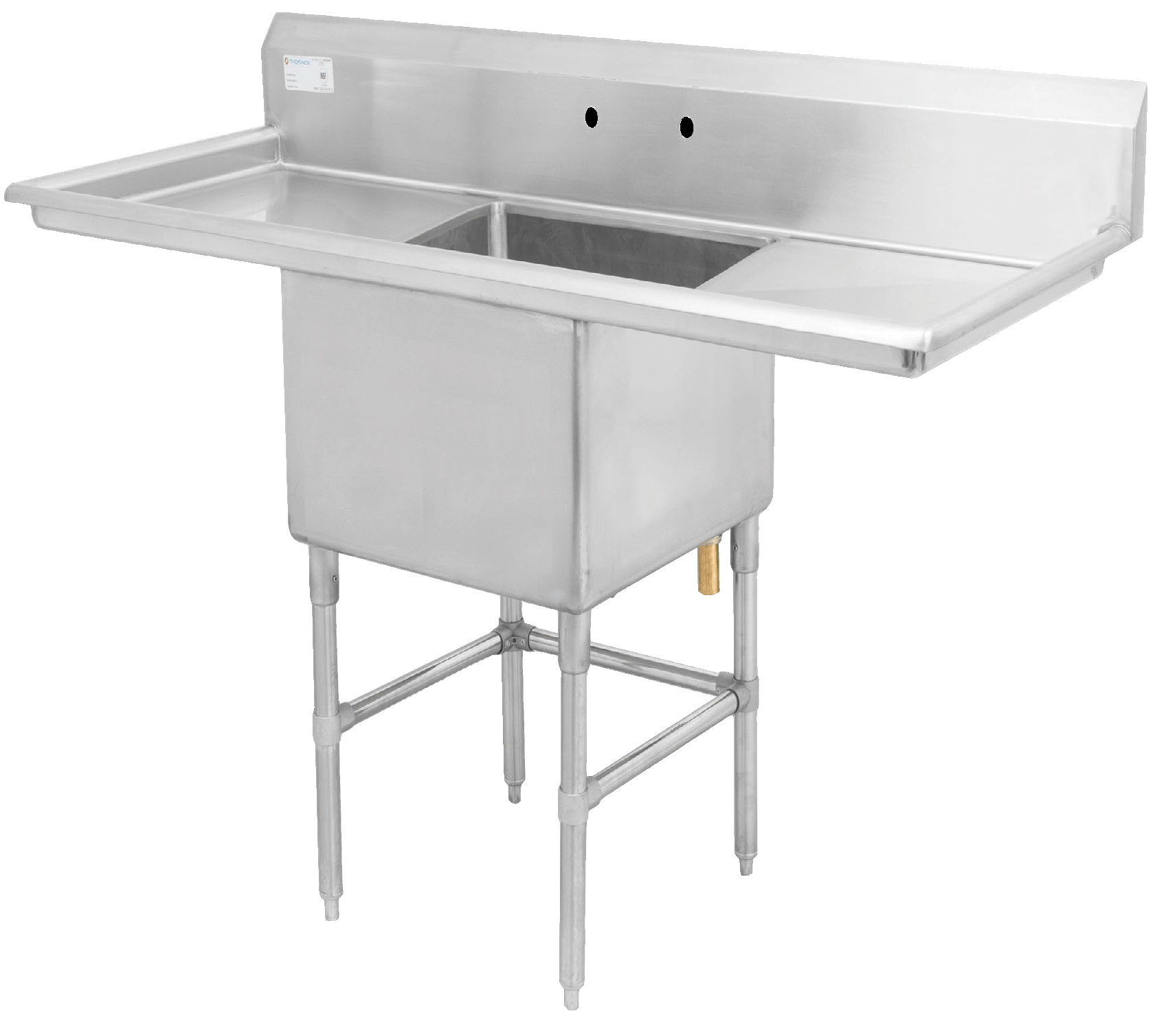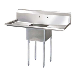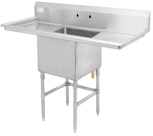 This is a Thorinox stainless steel one compartment sink. With it, you can choose to have no drainboards, have a drainboard on either the right or the left, or have a drainboard on both sides. Two models can also be ordered with a centre drain.