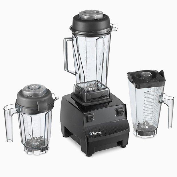 Vitamix's durable BPA-free 64-ounce container blends both low-volume and high-volume beverages, and comes with a removable lid plug, making it easy to add ingredients while blending.